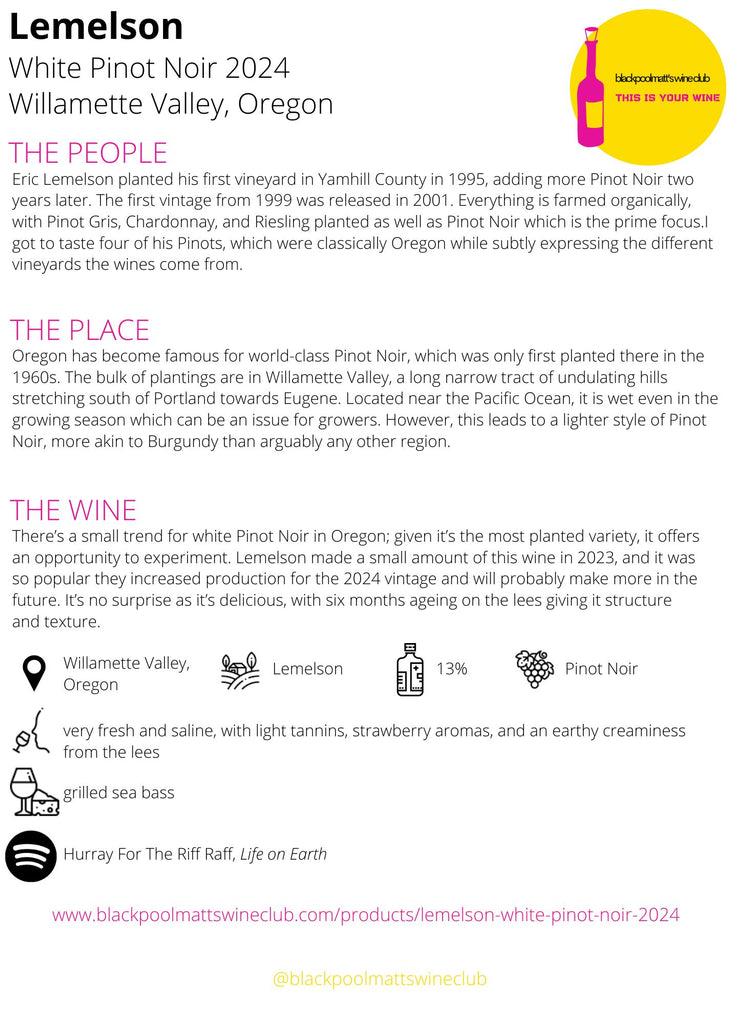 Lemelson White Pinot Noir Willamette Valley 2024